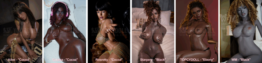The term “black sex doll” doesn’t refer to a single shade. Instead, different brands bring their own interpretations of dark skin beauty, offering rich shades that range from suntan to cocoa, ebony, and deep black, providing a variety of tones to suit your preferences. Popular brands like WM Dolls, Irontech Doll, and Starpery Doll all have their signature palettes. A “black” from WM looks quite different from “black” from Starpery, so you can find the tone that feels just right for you.